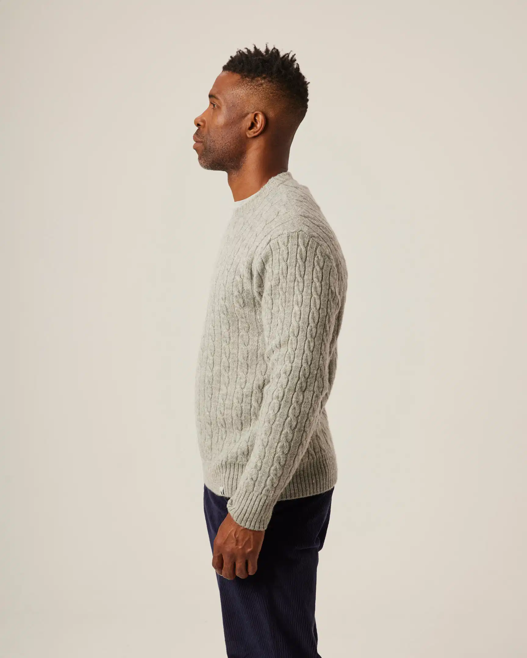 Peregrine- Makers Stitch Cable Crew in Light Grey